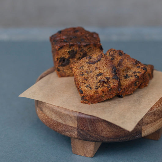 Our loaf has brandy-soaked currants, apricots, walnuts, raisins and dates and is moist, flavorful and full of the best quality ingredients. Glazed with bourbon, you can't go wrong enjoying a piece at the end of your day, watching the fire, sipping a whiskey, thinking about the old days.